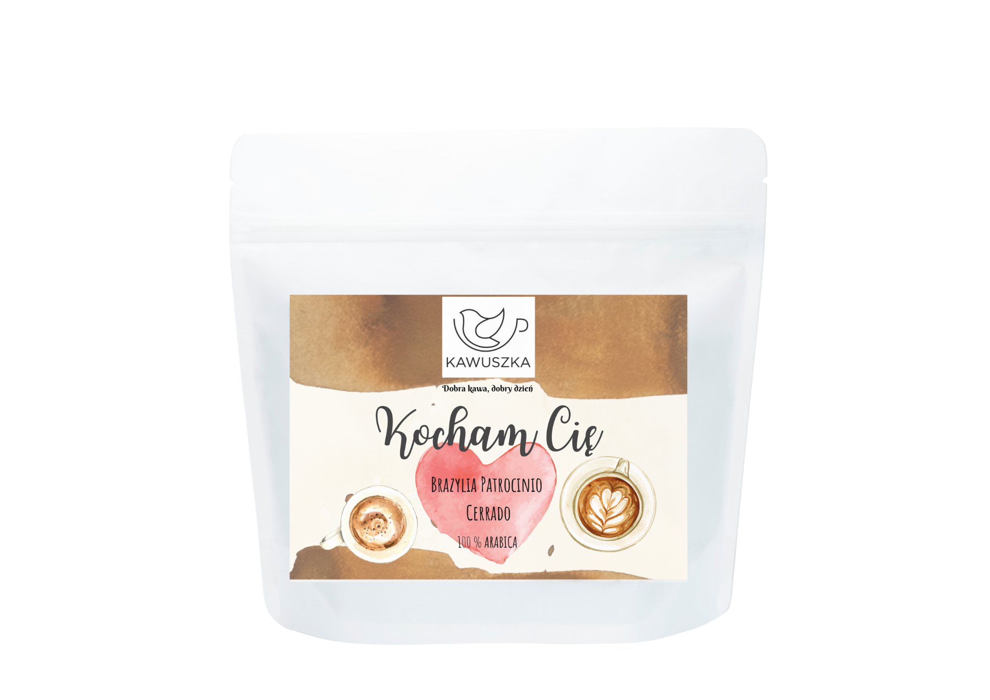 Personalizowana etykieta dotyczy wyłącznie kawy Brazylia Patrocinio Cerrado – naszej najbardziej klasycznej propozycji, o łagodnym profilu smakowym z nutami czekolady deserowej i orzechów laskowych.