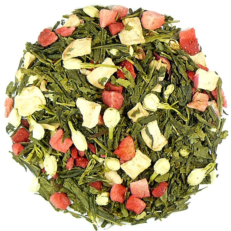Składniki: Sencha China, mięta spearmint, jabłko suszone, jaśmin, truskawka liofilizowana